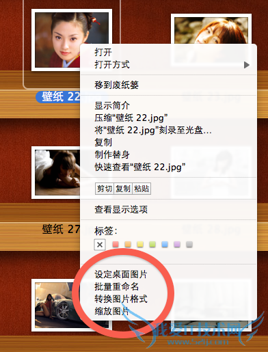 2.设置桌面壁纸,10.6以后的系统都内置了这个功能对图片点右键就能看到