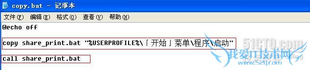 7,增加一个批处理,重新通过net use连接一下共享打印机电脑拷贝到开机启动项那里,这样,开机以后就可以直接打印而不会出现问题了。但是如何把它拷贝到开机启动里了?而且用户只要刚开始运行批处理一次,以后就只要一开机,就可以打印了?我们这样: