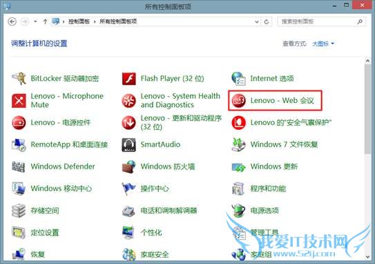1. ThinkPad笔记本若系统下安装了ThinkVantage Communications Utility应用程序,可在控制面板中打开“Lenovo-Web会议”;