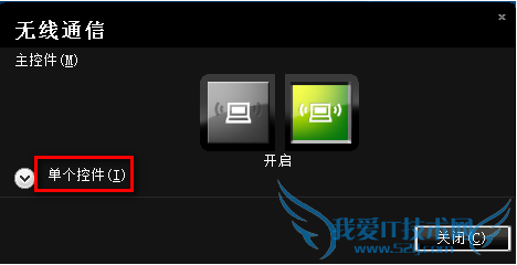 (备注,因无线网卡有一个单独的开关,如果开启总开关后,无线还是无法使用,需要在上图的界面 点击“单个控件”按钮后,点击无线开关打开。)