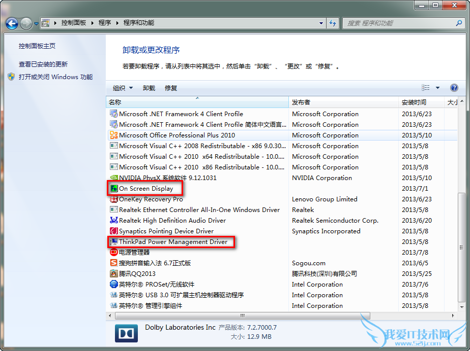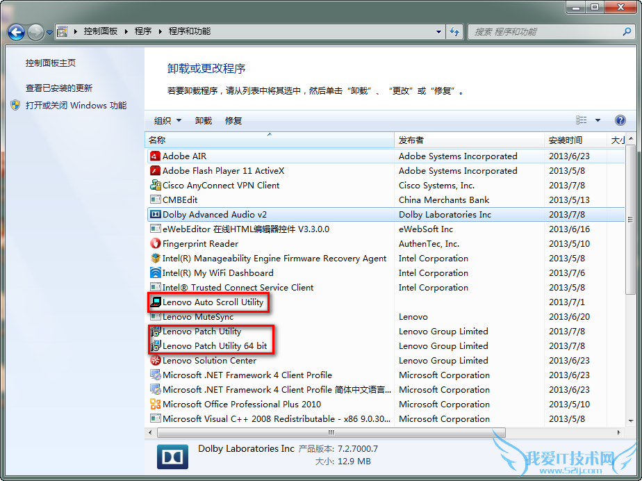 注:其中Lenovo Auto Scroll Utility,Lenovo Patch Utility(X64)、On screen Display为快捷键驱动程序。
