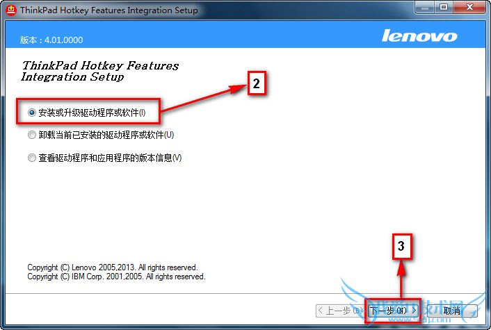 完成解压缩后,计算机会弹出 快捷键驱动的 安装提示窗口,选择“安装或升级驱动程序软件”,点击“下一步”按钮;