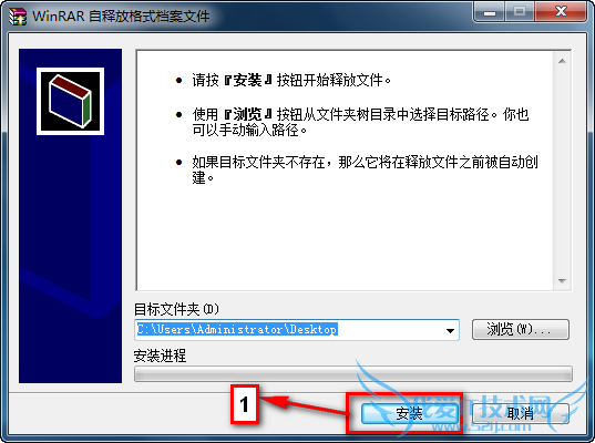 (注意:这里的“安装”按钮并没有开始真正的程序安装,只是程序解压缩而已)