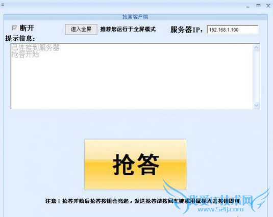 学校要举行一场法律知识抢答竞赛,首先要各系的各班先选拔参赛队,可是学校就那么几套抢答器系统,不可能借到。为了让各班都能使用抢答器,选拔出优秀参赛队,小李老师这个电脑迷,找到了一个不但能就地取材,而且操作性很强的方法。那就是使用“局域网抢答器”这款小工具,再加上多媒体网络教室,就能轻松组建一个网络软件抢答器,代替传统的专用硬件抢答器。