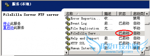 1、在系统服务中看到了一个服务名称为FileZilla Server FTP server的服务没有启动:
