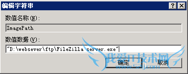 2、现在就可以来修改为正确的路径了,比如这里正确的路径是"D:websever tpFileZilla server.exe"。然后确定,并关闭注册表编辑器。