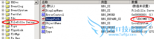 1、运行中输入regedit,打开注册表,在 [HKEY_LOCAL_MACHINESYSTEMCurrentControlSetServicesFileZilla Server找到这个路径,也就是FileZilla的路径,有一键名是"ImagePath",也可以利用注册表自带的搜索功能,查找你想要修改的路径;并点开这个键名查看信息,发现就是原来的路径。