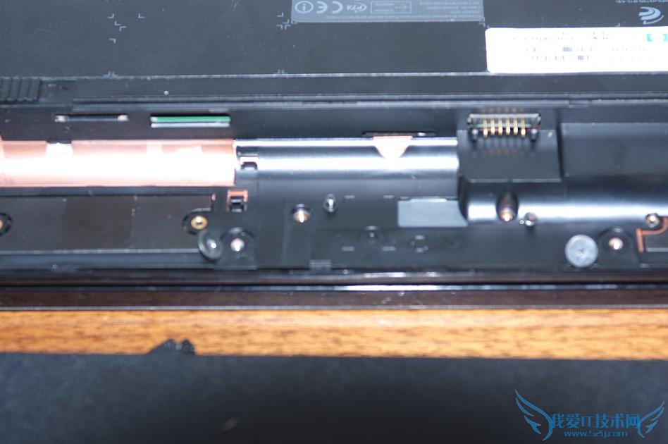 通常笔记本的构造。在背面都会有提供内存插槽以及硬盘之类的,供我们升级,不过显然这台不是,研究了下,将电池拔出,拆卸电池周围的所有螺丝,如图下