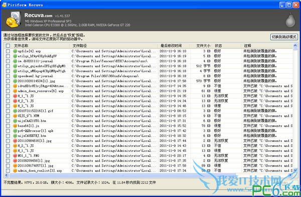 其中的高级恢复相当的强劲,格式化过的硬盘,用这个能恢复95%,并且可以直接恢复文件夹。