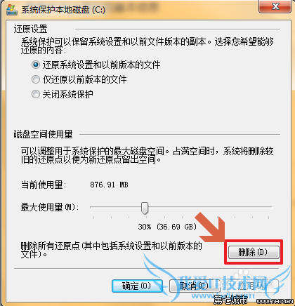 17、如果需要删除还原点,则可以进入系统保护本地磁盘界面,点击“删除”按钮即可。