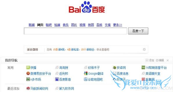 欢迎您访问我爱IT技术网,今天小编为你分享的电脑教程是日常使用电脑方面的电脑常识:百度首页导航不见了怎么办?,学会并运用这些电脑常识,让你快速玩转电脑及互联网方面的知识,下面是详细的分享!