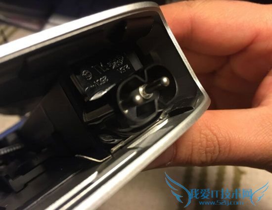 3. 如果到了这一步骤,你还没有出现任何问题的话,就可以进入主题了。按照锋友 xrzs_k 的说法,你需要往主板上的两个孔里塞螺丝刀或者棍子之类的物体,将主板往外撬。主板拆下来之后,将主板电源的接头拧成 90 度,并将电源取出。