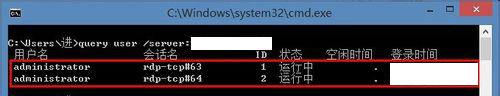 方法2:使用xp或者server2003打开“CMD”然后输入“query user /server:a.b.c.d”查看用户连接会话,如图所示,在会话名一栏,名称中带有“rdp”的均为远程用户连接。接下来执行命令“logoff id /server:a.b.c.d”,注销没用的用户会话,如logoff 1 /server:a.b.c.d 。将所有的在线回话链接注销后,就可以使用mstsc进行远程登陆了。