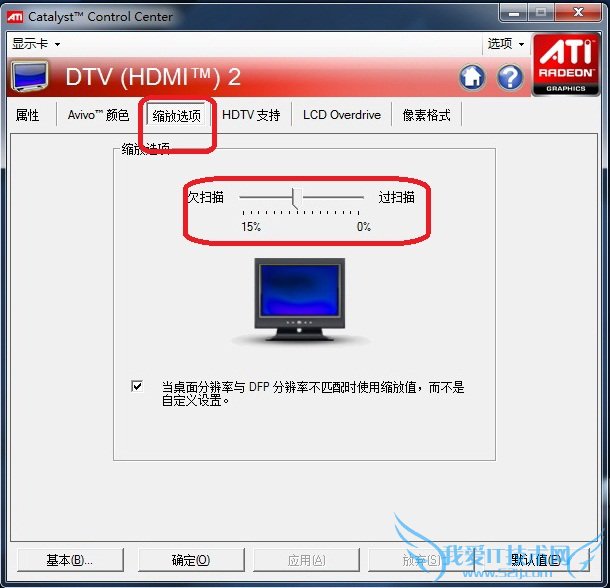 Ideapad Y460 Y560(ATI显卡)通过HDMI外接显示器无法全屏