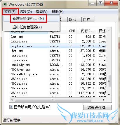 二、上面操作结束后,桌面就会消失。接着按下 ctrl + alt + esc打开任务管理器,选择“文件”然后选择“新建任务”。如下图所示: