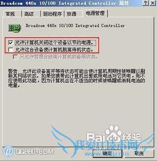 第三步:打开“网上邻居”——>右键点击“本地连接”选择“属性”——>在“常规”选项卡上部点击“配置(C)”——>选择 “电源管理”——>在“允许计算机关闭这个设备以节约电源”打上勾,去掉“允许这台设备使计算机脱离待机状态”前面的勾——>点击“确定”退出。