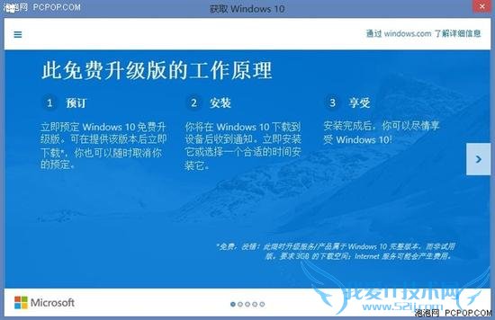 在 Windows 10升级助手底部拥有提示:此显示升级服务/产品属于Windows 10完整版本,而非试用版,要求3GB的下载空间,并且Internet服务可能会产生费用。也就是说,首先你的硬盘剩余空间要大于3GB,并且要连接互 联网就可以顺利升级Windows 10。