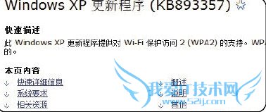 在WIN XP下,需要安装此补丁才能看到无线路由器设置的密码功能,如果路由器设置了密码,且你的电脑没有升级到 XP SP3的系统,那么就需要安装KB893357补丁。