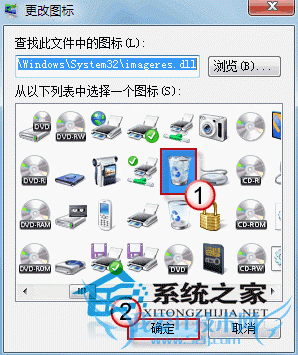 然后从列表中选择一个与回收站(满)相对应的图标,按“确定”按钮保存设置,然后退出窗口。