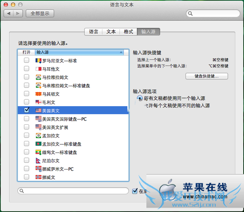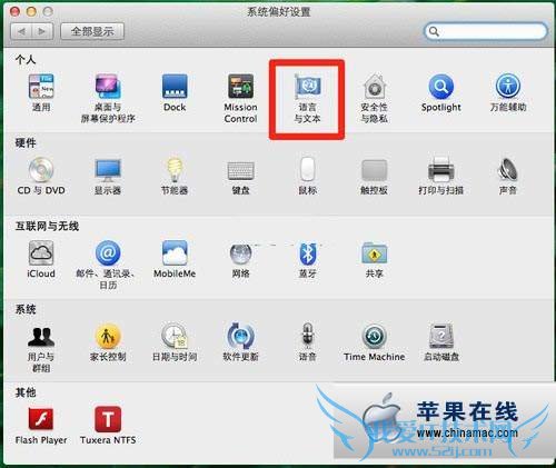首先打开系统偏好设置里的语言与文本选项,打开输入源
