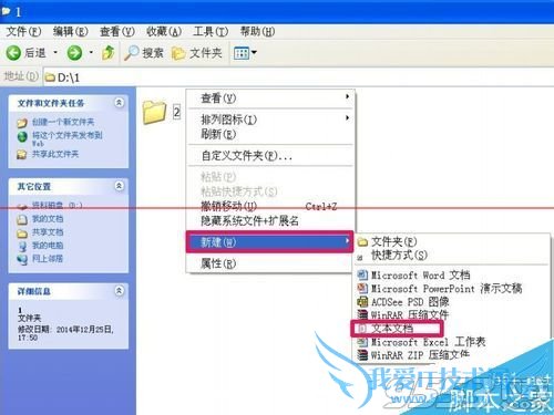 1,先要在被删除文件的文件夹之外建一个文本文档,示例删除的是“2”文件夹下所有的图片,所以这个文本文档必须建在“2”文件夹之外,创建文档方法,在空白处右键->新建->文本文档。
