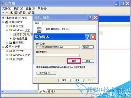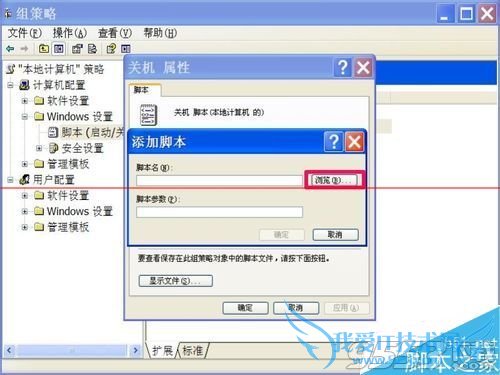 8,在添加脚本窗口,点击“浏览”按钮,去加载刚创建的批处理文件。