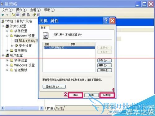 10,如果要终止在关机时执行批处理,同样在关机属性窗口,选择一个要删除的脚本,按”删除“即可。