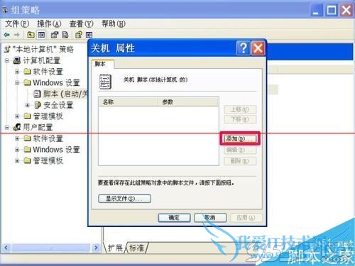 7,在关机属性窗口,找到“添加”按钮,单击打开。