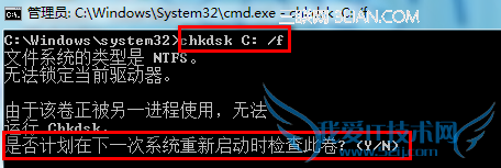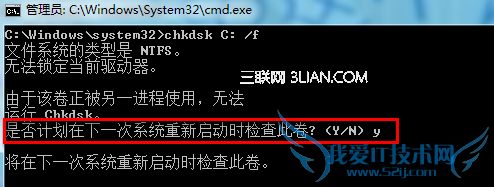 如果要检查的驱动器上有文件打开,需要选择下次重新启动计算机时检查该驱动器,那么重新启动计算机后 chkdsk 会自动检查该驱动器并修复错误。