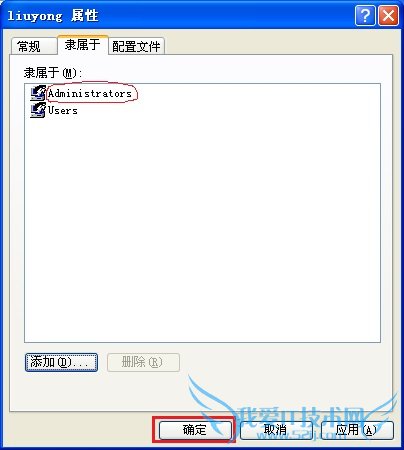 5. 在弹出的属性对话框,点击“隶属于”选项卡,然后再点击“添加(D)...”按钮。如下图所示: