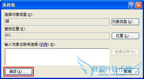6. 在弹出的选择组对话框中,直接点击“高级(A)...”按钮。如下图所示: