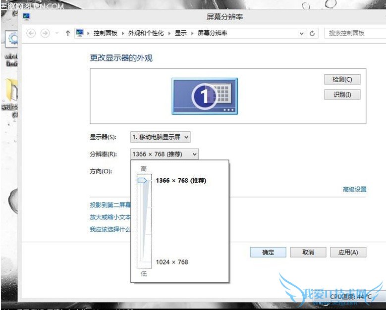 3. 桌面空白处上点右键,选择屏幕分辨率,把分辨率复位,拉到最高档,然后确定并保留更改。