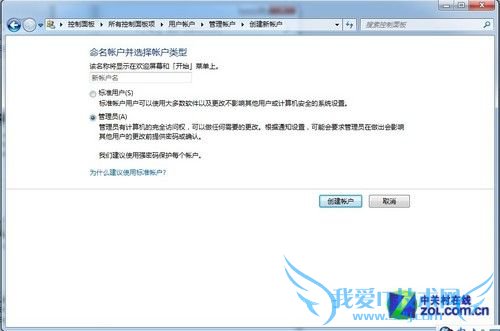 默认打印机的注册表键值,存放在HKEY_CURRENT_USERSoftwareMicrosoftWindows NTCurrentVersionWindows这个位置当中,与系统当前用户有关。所以如果遇到无法设置默认打印机的时候,新建用户是最彻底的解决办法。第一步是在开始菜单中打开控制面板,找到用户账户这个选项。