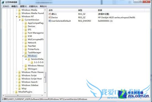 上述方法虽然比较好用,但是很多人的客观环境不允许更改用户,这部分用户怎么办呢?这就需要手工修改注册表。在开始菜单里面运行regedit,弹出注册表编辑器。并打开HKEY_CURRENT_USERSoftwareMicrosoftWindows NTCurrentVersionWindows这个文件夹