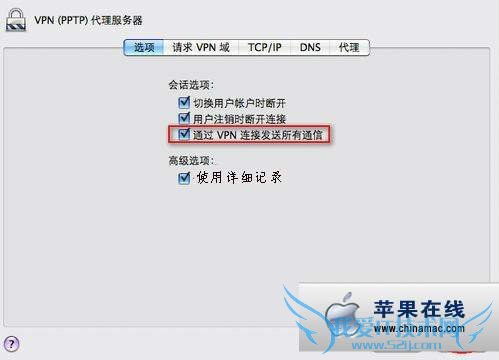 第五步:但是,别以为你什么都ok了,还有一些概念和一些高级的注意事项,瞧,我那个红色的框框,你要点下看看噢。高级选项,注意看到那个红色框框内的,要勾上“通过虚拟连接连接发送所有通信” ,然后点“好”。 然后 开始 “连接”。