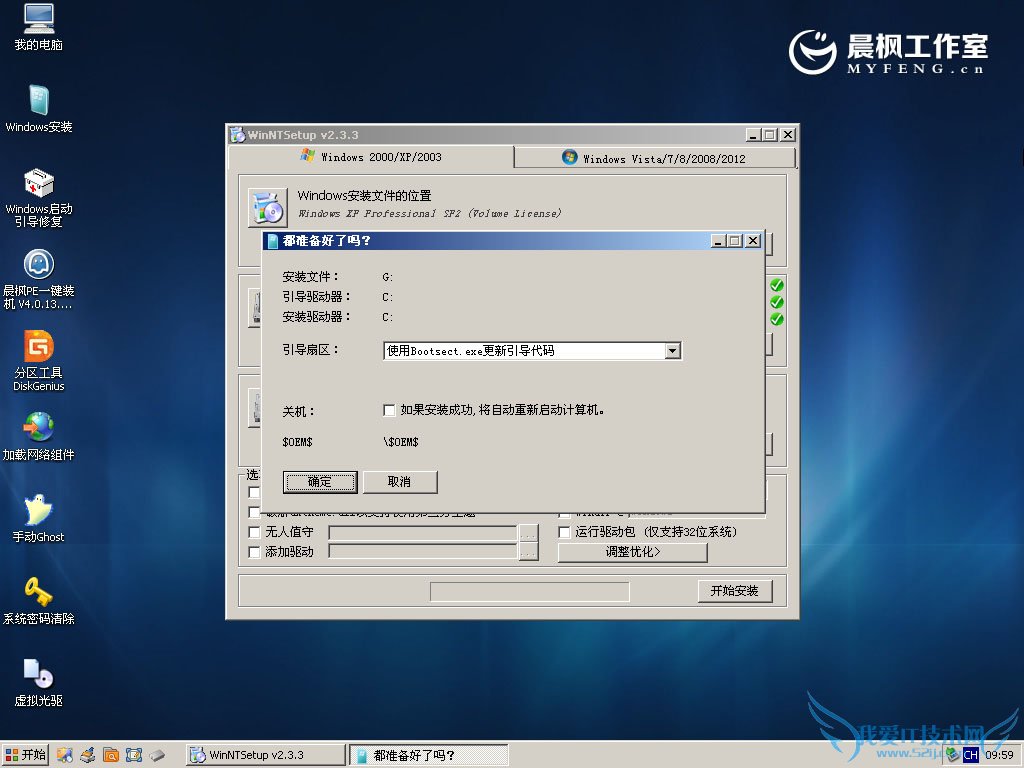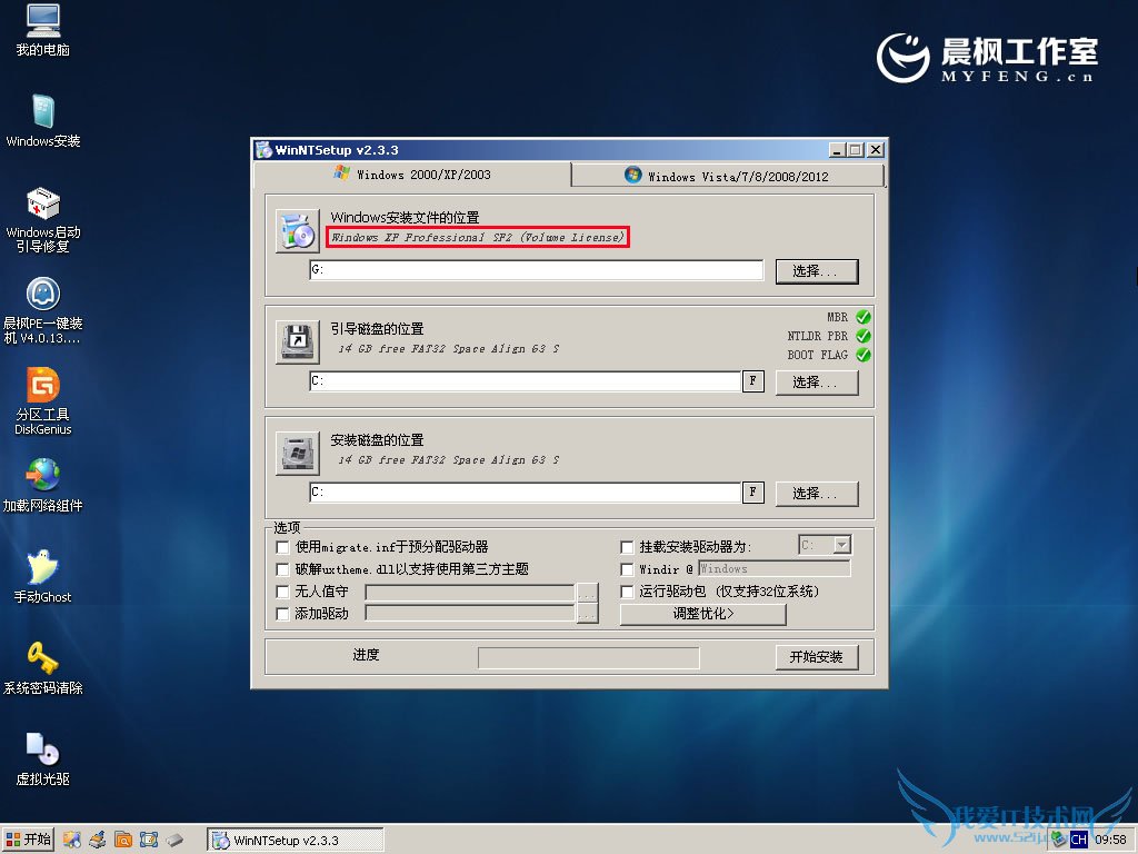 准备工具:winxp原版系统iso镜像+晨枫启动U盘V4.0