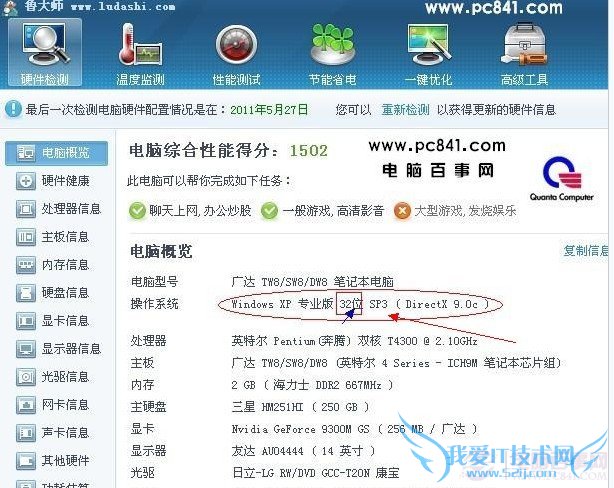 除了以上通用的方法外,借助软件也可以查看系统的位数,目前很多系统优化软件,比如优化大师、超级兔子、鲁大师等均可以检测系统位数,大家只要下载一个检测一下即可。下面简单介绍下使用大家常用的鲁大师软件检测系统位数。