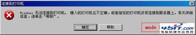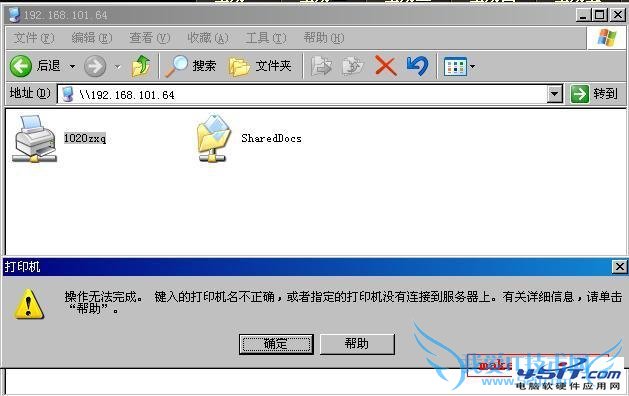 2,但是点击下一步的时候破天荒的出现了报错对话框:操作无法完成.键入的打印机名不正确,或者指定的打印机没有连接到服务器上…… 如下图所示: