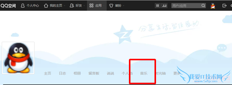 5、然后进入到QQ空间,如下图,点击音乐。