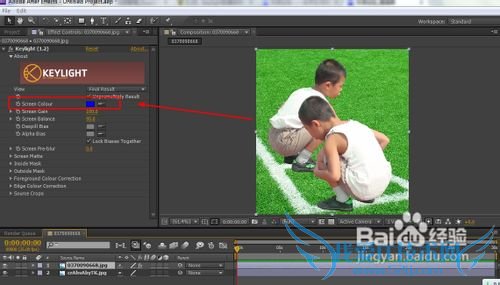在keylight控制面板中有一个屏幕色的选项,点击后面的吸管按钮,在素材上面选择不要的颜色单击即可。打击后选择的颜色就自动的删除了。
