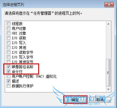 3.下拉滚动条,勾选“映像路径名称”和“命令行”,点击“确定”按钮保存