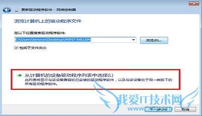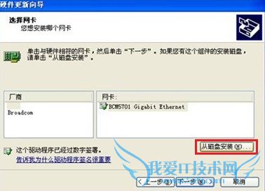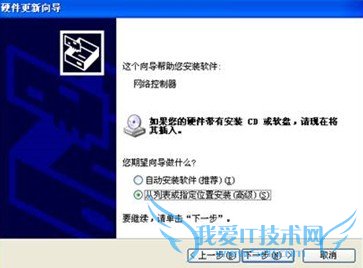 注:在此图中,点击上面的“浏览”定位到相应网卡驱动文件夹也可安装驱动,但针对带SETUP.EXE安装文件的网卡驱动包不是100%有效,建议还是采用定位INF驱动文件的方法比较稳妥。