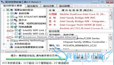 3. 接下来,在弹出的安装界面中会显示出本机的硬件驱动列表,我们只要勾选有线、无线网卡驱动,然后点击选择安装即可完成驱动的安装,如图23