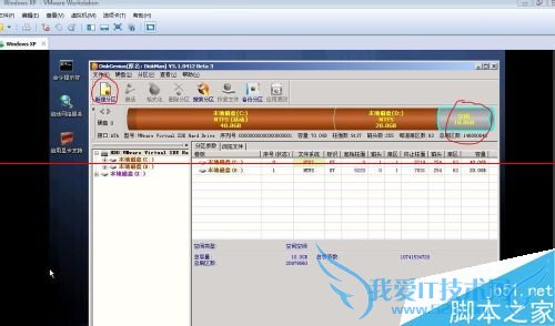 5、完成后启动虚拟机,使用pe或dos光盘(或载入iso镜像),进入软件如pq或diskgen中完成虚拟机磁盘分区的操作(新建、合并等),xp虚拟机下也可以使用分区软件来完成,win7虚拟机下则可以直接使用系统的磁盘管理工具来完成。