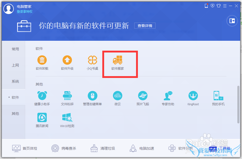 1,当然,现在除了可以用笨办法帮软件搬家外,我们还可以借助一些强大的第三方软件帮电脑软件搬家,例如腾讯电脑管家的工具箱中就有这个功能。