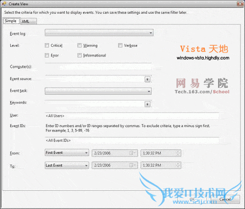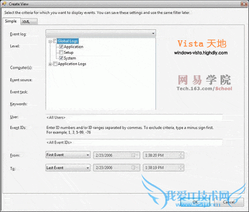 同时,与Windows XP中事件分为信息、警告、错误等相对宽泛的类型相比,Windows Vista中的日志查看器新增加了“严重 (critical)”“详细 (Verbose)”两个选项,这可以让用户在查找与定位故障时更有针对性,如可以设置一个查看在应用程序日志与系统日志中所有严重性事件的筛选器,这样,则可以将多个日志中的影响系统运行的严重事件放在同一个视图下查看。