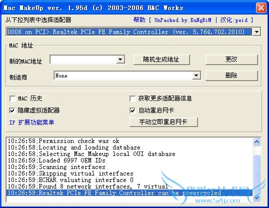 软件修改法。推荐使用Ryll MAC Editor。使用这个小软件可以快速修改MAC地址而且可以迅速恢复,免除后顾之忧。