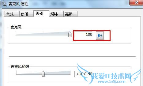 3. 双击“麦克风”进入“级别”,将音量设置为100,并确认麦克风不是被禁用的状态;