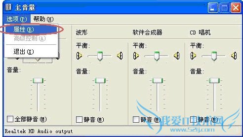 4. 在打开的主音量窗口里面,点击选项,选择里面的“属性”;