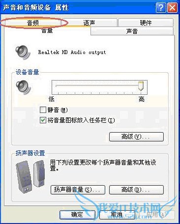 2. 在打开的声音和音频设备属性里面,点击选项卡“音频”;